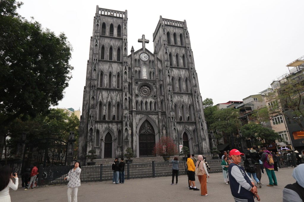 After an afternoon rest we went in the direction of St Joseph’s Cathedral which is on the edge of the old quarter. A nice area of Hanoi – quite busy but not over powering. It is indeed a city of motorcycles – 6m! The cathedral looks bit grim from the outside but is impressive inside. French architect and design from their time as the ‘occupying power’. Wandering down a side street we shared a Banh Mi Sandwich. The bread was beautiful and light which we had not expected. As we read later it is a reflection of the French presence. We wandered through the streets back to the hotel.