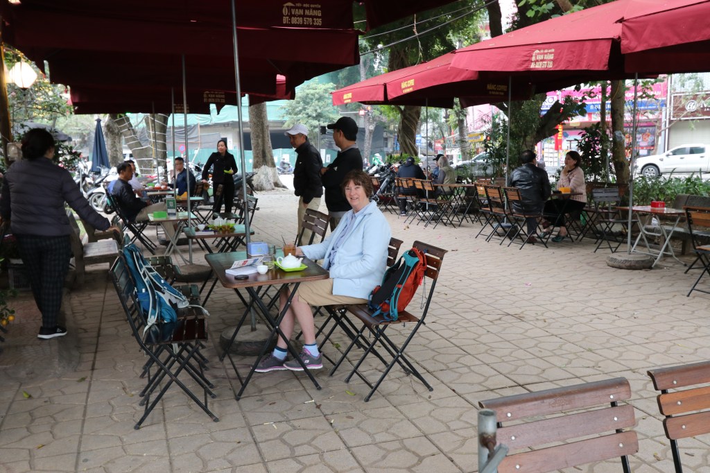 From the Old Quarter we wandered back towards St Joseph’s Cathedral intending to find a coffee shop to stop and rest our feet. Having ordered drinks and sitting on the little stools contemplating the world as it passed by we were taken completely by surprise to Will and Maura walk past. We each had no idea the other was in Hanoi. After we caught up with each other we tentatively arranged to met in the evening – sadly Will had eaten something which had not agreed with him and this did not come to pass.