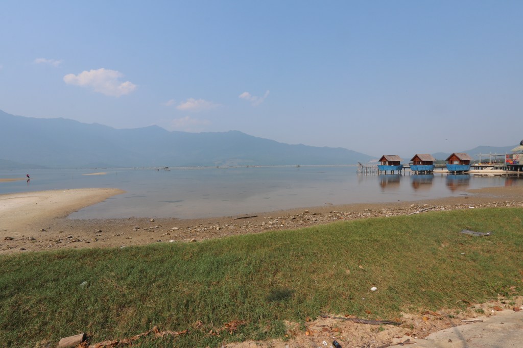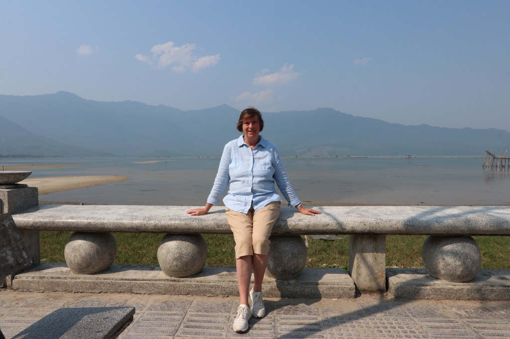 The fullest day yet. We left Hoi at around 0830 after breakfast. We went south and followed the coast road past a large lagoon to our first stop at Lap An Lagoon. Most of the way we had the Saigon-Hanoi Railway on our right hand side. The lagoon was in a lovely setting with the mountains in the background. It was a popular coach stop and was busy – but efficiently managed. With us were Neil, Kirsty (Canada), Jennifer (UK) and Fran (NZ). We both Vietnamese Salted Coffee. An iced coffee drink with caramel, salt and condensed milk. It is as sweet as it sounds! Back on the bus we then started to make our way over the mountain before dropping down into Danang. The mountain road was lovely – whilst not thick jungle it was certainly green with trees either side of us. The cloud base was low and so by the time we got to the top it was impossible to see anything. A stop had been planned here but we decided to give it a miss as we would have just been standing around in cold damp air with nothing to see!