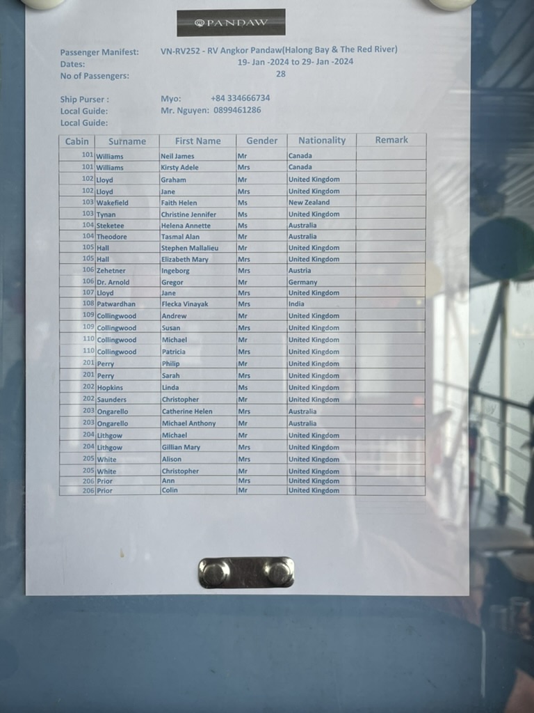 The afternoon was spent on the boat travelling up to Hanoi – catching up on reading and journal.