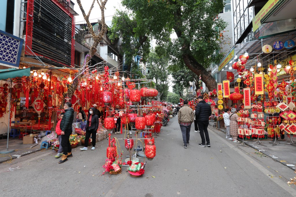 Following the drink at the Railway Street we headed out for the Old Quarter and Long Bien Bridge. It was famous for the US bombing it and the Vietcong rebuilding it – it was nationally felt to be a sign of resilience against the Americans. The road were extraordinarily busy and you just had to ignore the traffic and forge your own way along the streets – it was at times a bit exhausting! Everywhere we went there were lantern and the blossoming flowers which only appear at the time of New Year.