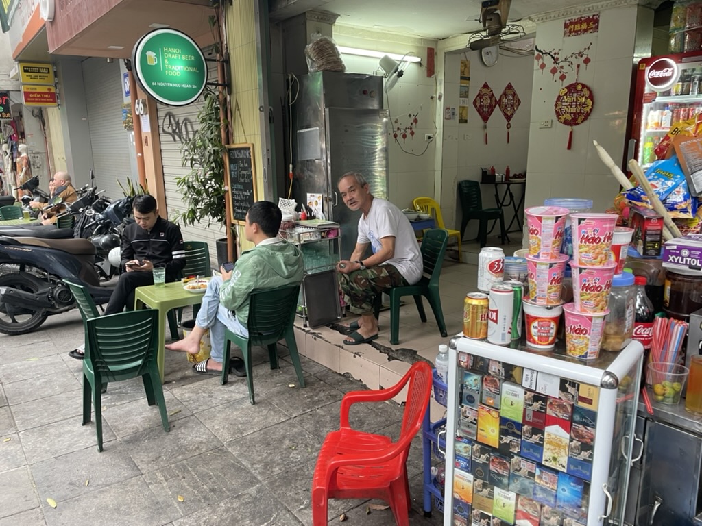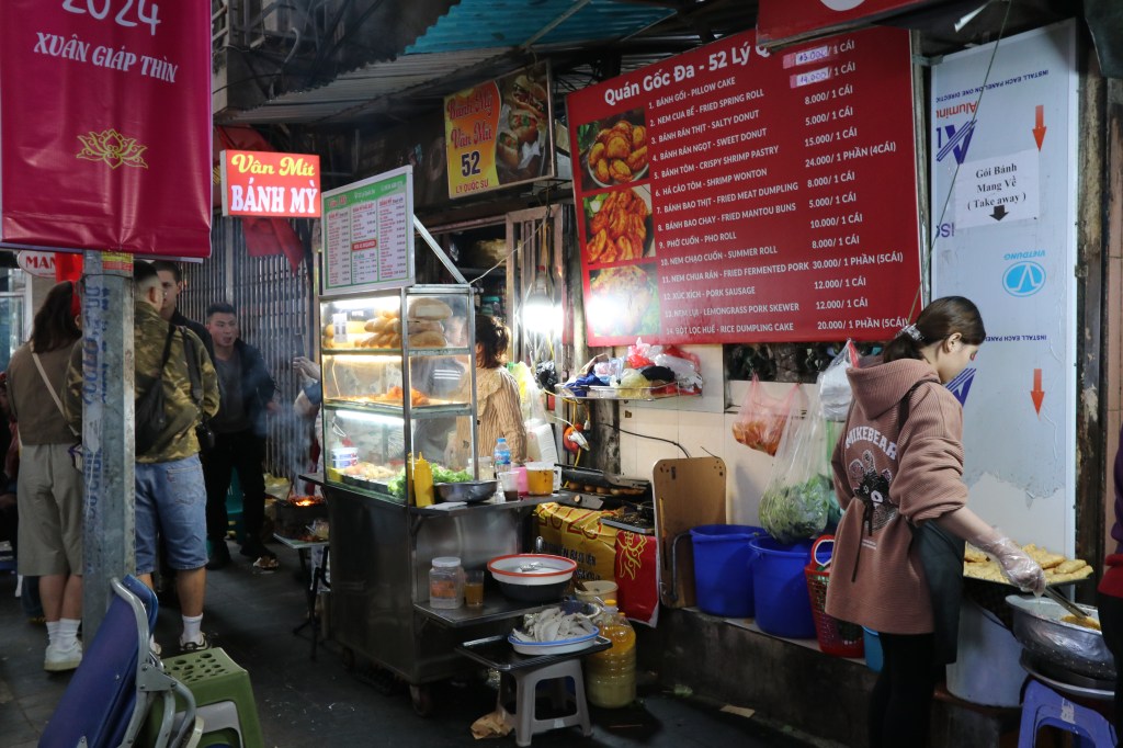 After lunch we explored the Old Quarter. We were in two minds whether to go back but did not say so to each other. If we had we would have stayed on the boat! But the tour was very useful. We were taken down themed streets – food, coffee, vegetables – some of them quieter than the normal roads. We stopped for Vietnamese coffee whilst I left the group to find bier hoi – the freshly made daily beer. It was little more than a street stall where mainly Vietnamese gathered and I sat at a table with 3 people none of whom spoke English and enjoyed the beer. I had some chat with a US guy who gad travelled from Chicago – Japan – Cambodia – Vietnam – Singapore – Chicago – a 4 week schedule. Brutal for a holiday. In the 45 mins we had to look around the city we found a Banh My – street sandwich and skirted around the lake for a last time.