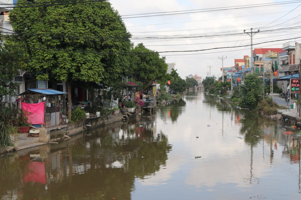 The intent was to visit a silk factory but it is still the Chinese New Year holiday and it was closed. However our inventive guide took us to a small town and where we wandered down the main street to a French Catholic Church and back up along the French man-made canal to the afternoon market. We are in a part of Vietnam that is off the normal tourist track and hence there is considerable interest in Europeans and Antipodeans wandering around. Shortly after arriving word gets out and children come out to find us and shout ‘hello’! The people are friendly and curious.