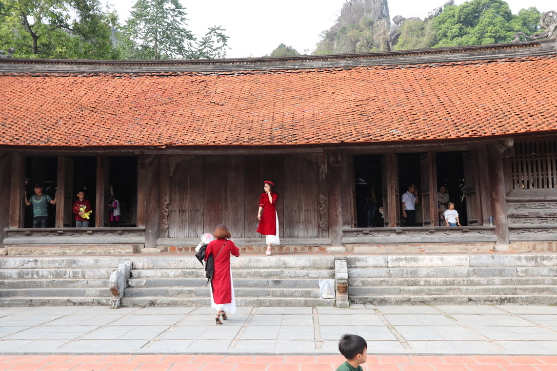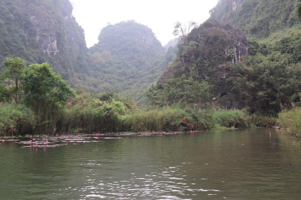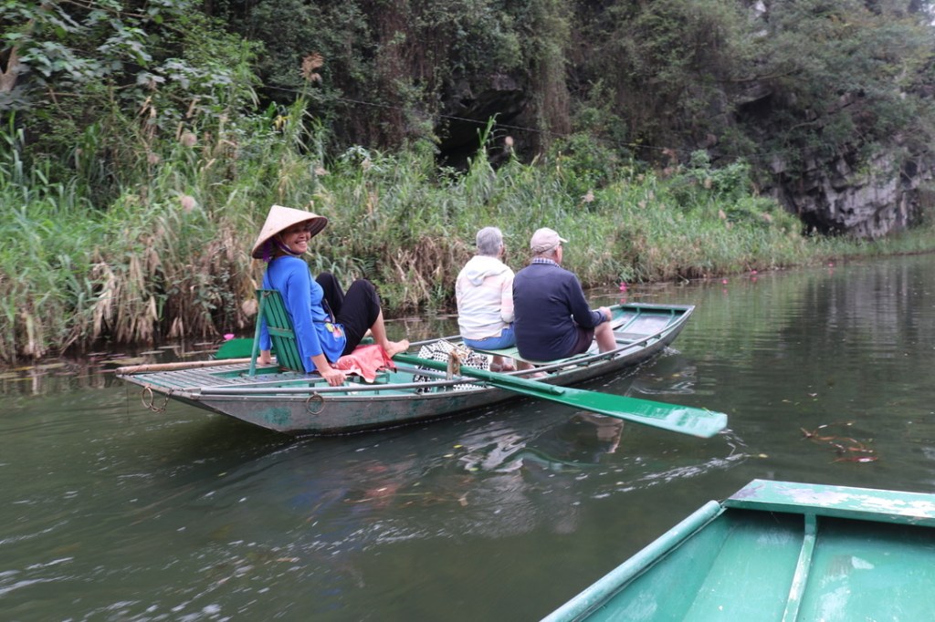 An early start this monring to get to Tam Coc – about 30 minute drive from the boat. Nestled in the mountainside, the River Ngo Dong flows through limestone peaks reminisent of Halong Bay. Big tourist centre and we passed many cafes, bike hire shops and car parks. We had set off early to avoid the crows wich we managed. This area was once the capital of Vietnam and has ben nicknaed Halong Bay on Land. The area is recognised by UNESCO as an area of of outstanding beauty as well as a cultural and heritage site.