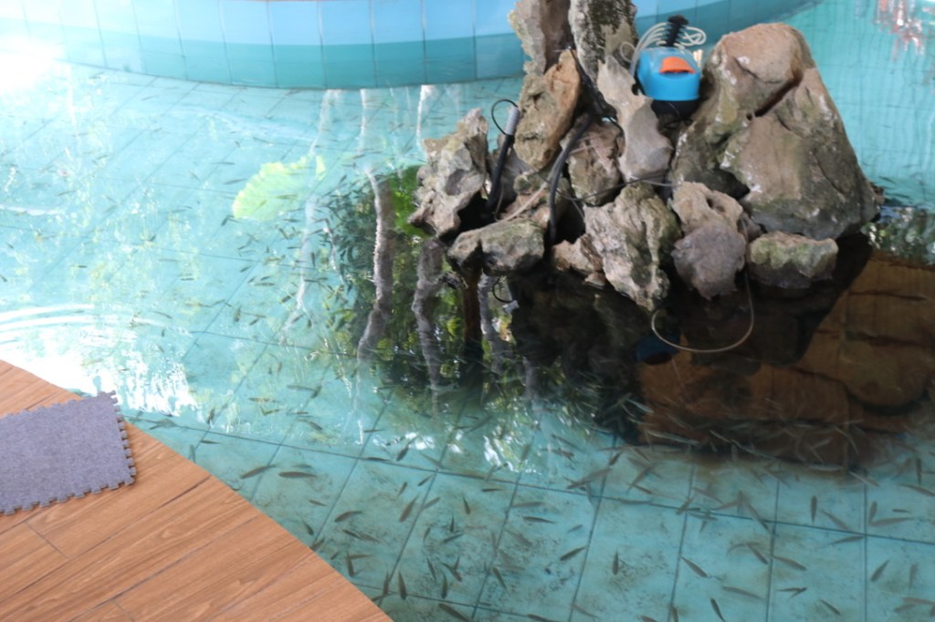 We stopped for some ‘wine’ – it was not very clear what it was made from but there were jars of snakes in liquid which it was hinted was the basis of the wine! We also stopped at a ‘fish bar where we dipped our feet in the water and had them nibbled by shoals of small fish. Once you had got over the rather odd feeling of your feet being nibbled it was quite pleasant.