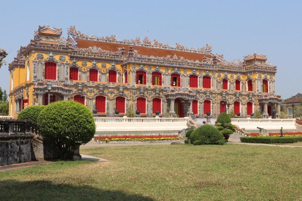 Once the King had resigned the North Vietnamese government gave the land away to the people but thankfully realised that unless they took some control over the site, everything would be destroyed or stolen. It is unclear how many people live inside the walls but it is clear that the Vietnamese government are offering ‘compensation’ to move them out and restore the grounds. We had lunch as one of the restaurants inside the wall. Very nice, with only tourists eating there. Huge amounts of food as it is considered poor hospitality if there is no food left on the table after the meal.