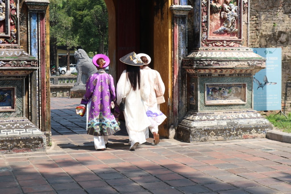 From here we took the bus to the Imperial Palace. A massive complex that is surrounded by a 10km wall. It was completely destroyed in the Tet Offensive of 1968. It was home to the dynasty that united Vietnam into a single country. There were 13 kings who reigned for varying amounts of time largely depending on their support of the French who colonised the country. The dynasty came to an end in 1945 after the last King who was a puppet of the Japanese abdicated. The government has put in a massive amount of work to restore the building which in effect are having to be built from new based on photographs and reports. The money comes from tourism and hence we are most welcomed! The palace itself looks magnificent and was only opened this New Year. A lot of people walking around and there seemed to be a bit of a tradition of the ladies wearing traditional court dress (concubine) including the special headdress which the guide Tuan called turbans.