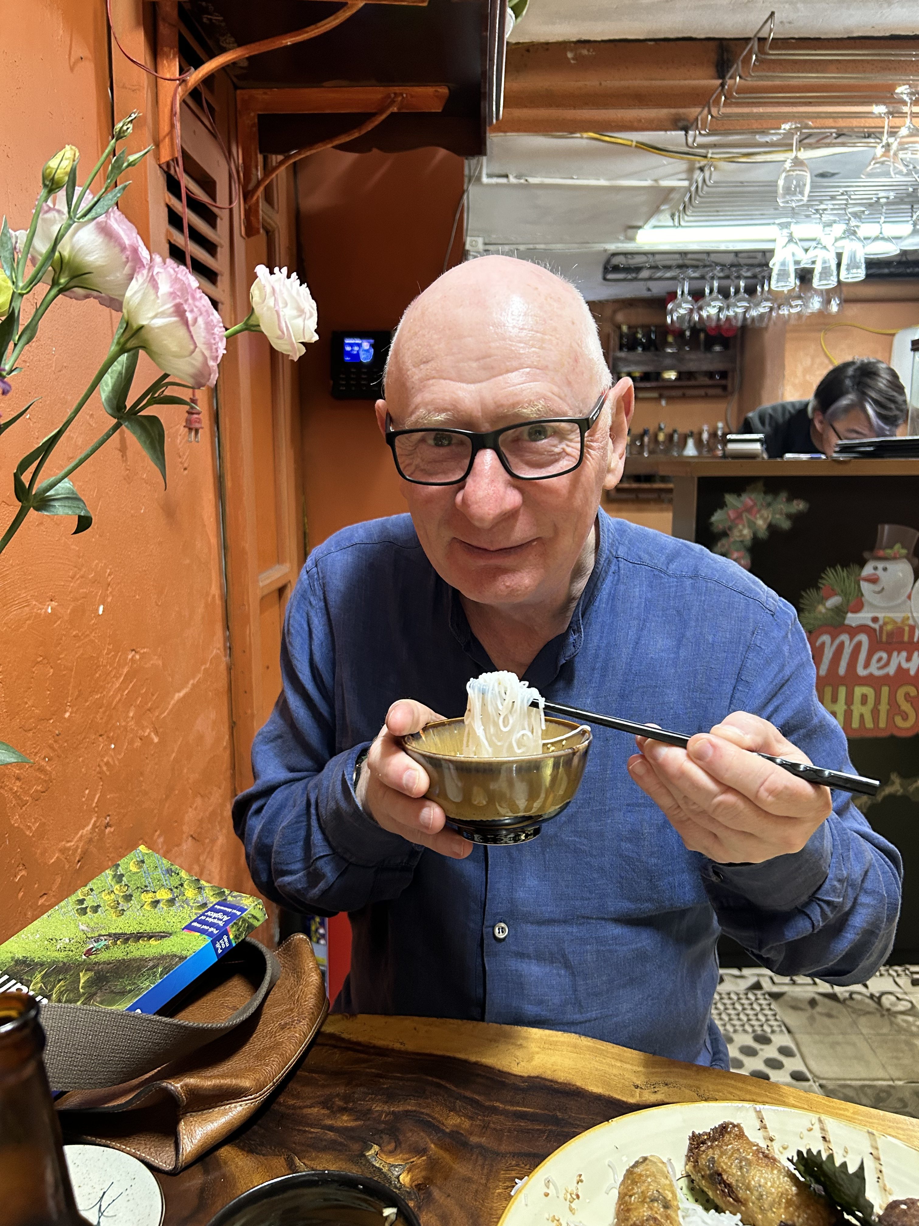 As we had not eaten since breakfast and it was cold we wanted to find a ‘sit down restaurant’ with a bit of elegance. After a google search we found the Mia Restaurant which was a short walk from the hotel. A great find – a little expensive by Vietnam standards – but the food and service was excellent. I had Buhn Cha and Gillian had a sea food soup. It was so good we booked for the following night – Chinese New Year – Year of the Dragon