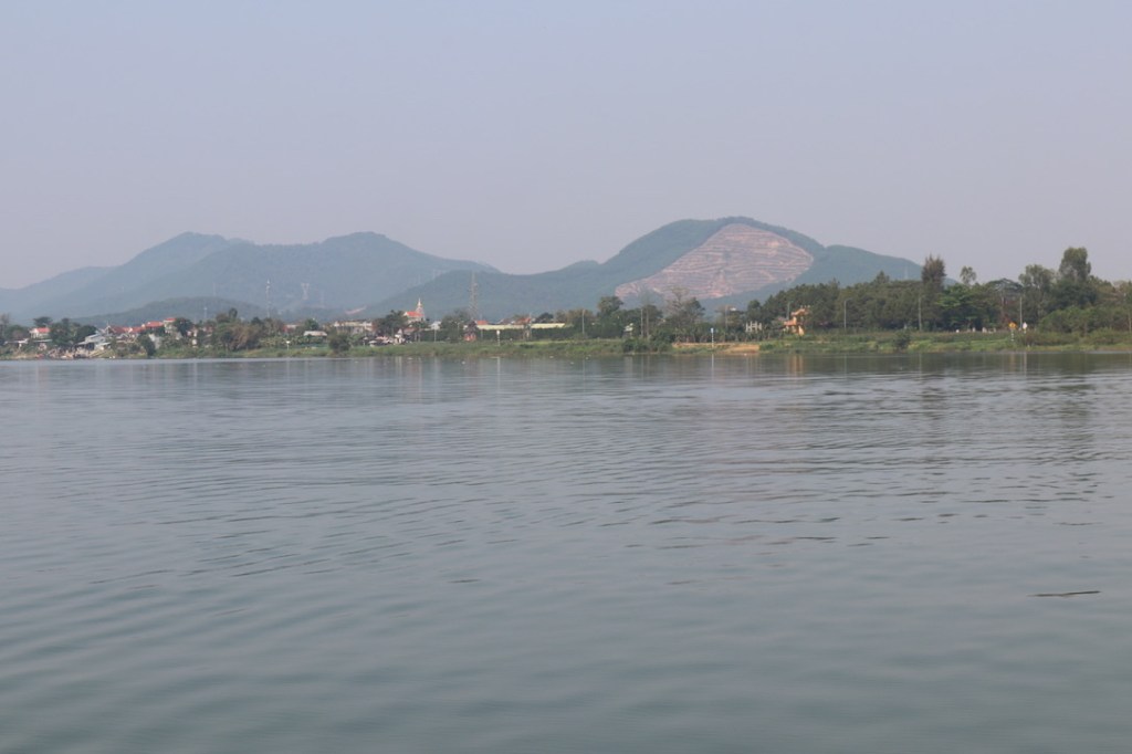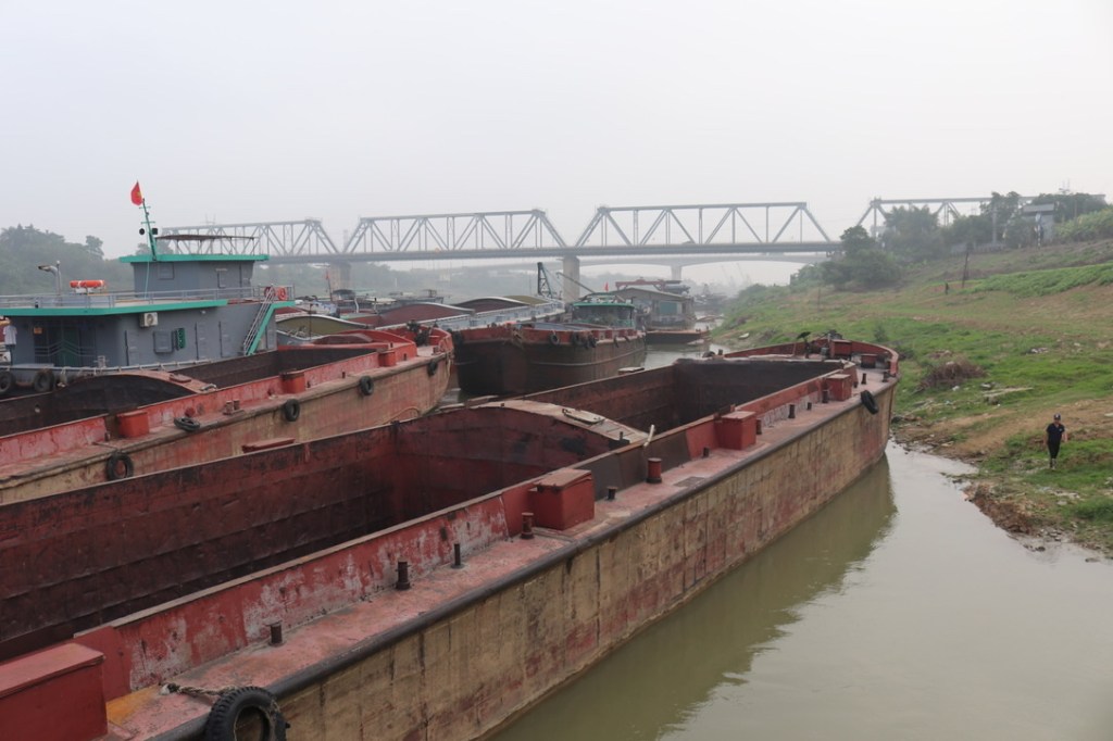The trip down the Kinn Mon River was a bit uneventful in the morning. We passed a huge amount of shipping tied up – mostly large barges. We then found out that this was due to the Tet holiday and normally the river was packed with these barges carrying coal, cement and sand up and down the river.