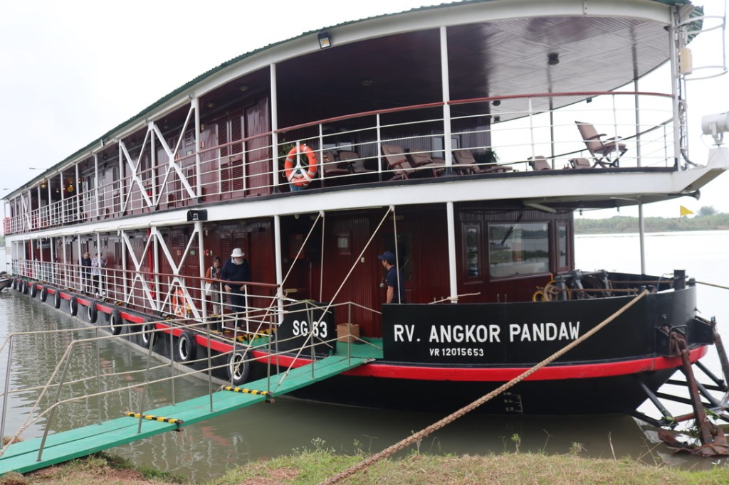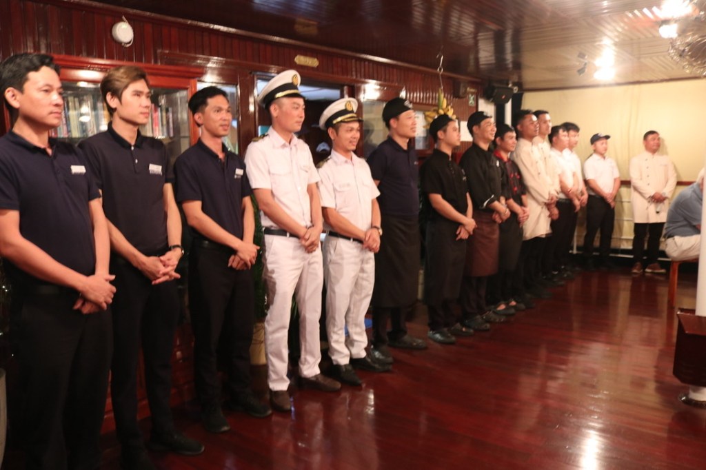 In the evening we had a local song and dance crew come on board. They were not professionals but clearly enjoyed performing. Again it was a first for Pandar and tow officials from the local party attended. The songs inevitably were about sons who had gone to war and the mother waiting for them to return. Given the length of the war and the privations after it, it is not surprising that this is the focus of local songs and dances. As we were expecting at the end we were all invited to dance. The ‘officials’ stood back from this and were very reluctant to take part but were dragged onto the floor by some of the Pandar guests and could hardly refuse. But they disappeared quite soon afterwards. It was a great night and at the end – as in town earlier in the day – they were keen to have photographs taken with us. We lingered in the deck for a while having a drink once it had finished just savouring the very full day. Htun was around to serve us whisky and Baileys.