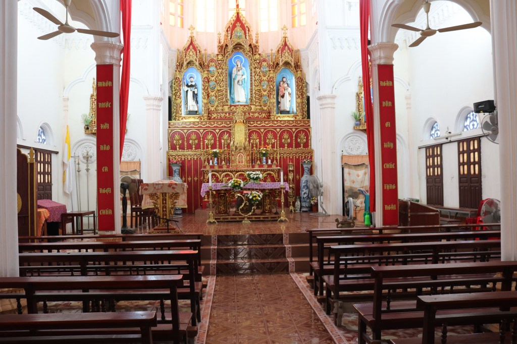 The French influence is strong and very present in the local religion which is Catholicism. The Churches are large and impressive. The one we looked at was old and had survived the Indo China War, the Vietnam War and the early years of Communism.
