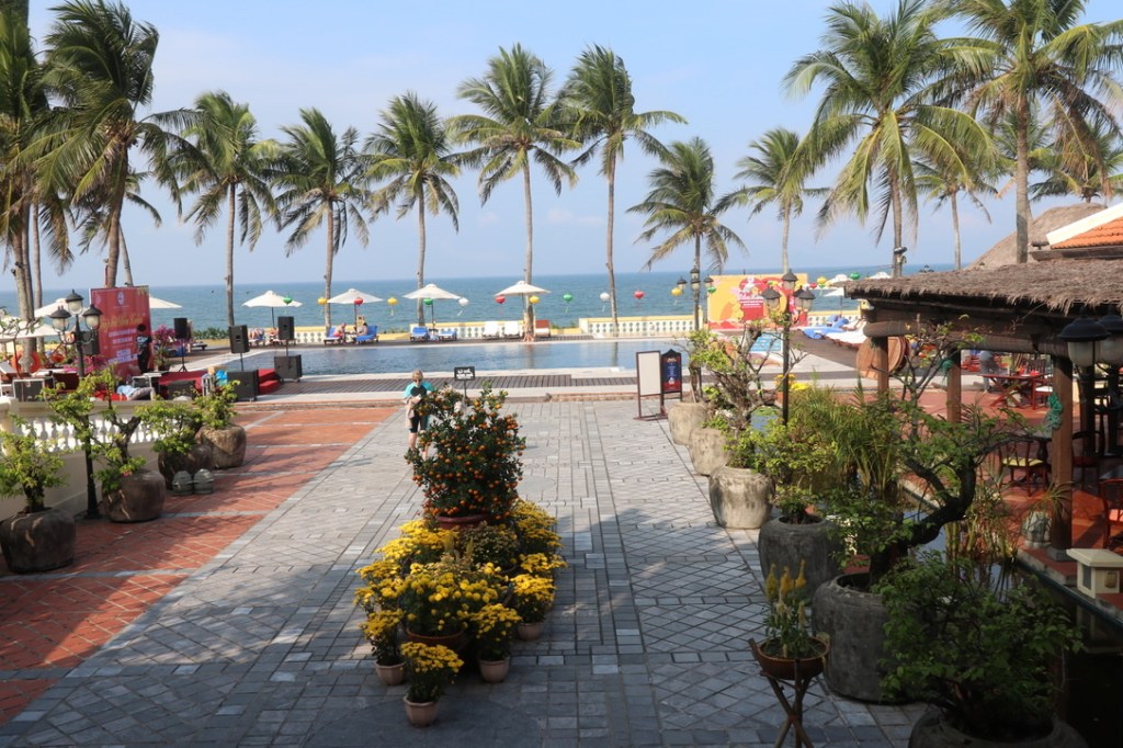 At last we got to our hotel – completely drained. Gillian was beginning to loose her sense of humour but just managed to keep it in check! But wow – the hotel was stunning. All of us said if we had known it was going to be life this we would have booked another night. The room was huge and airy. There were a number of eating areas and we sat down at a bar near the beach and had drinks and an evening meal whilst listening to couple play music and dance. They were non stop and what a playlist – ideally suited to the clientele at this resort.