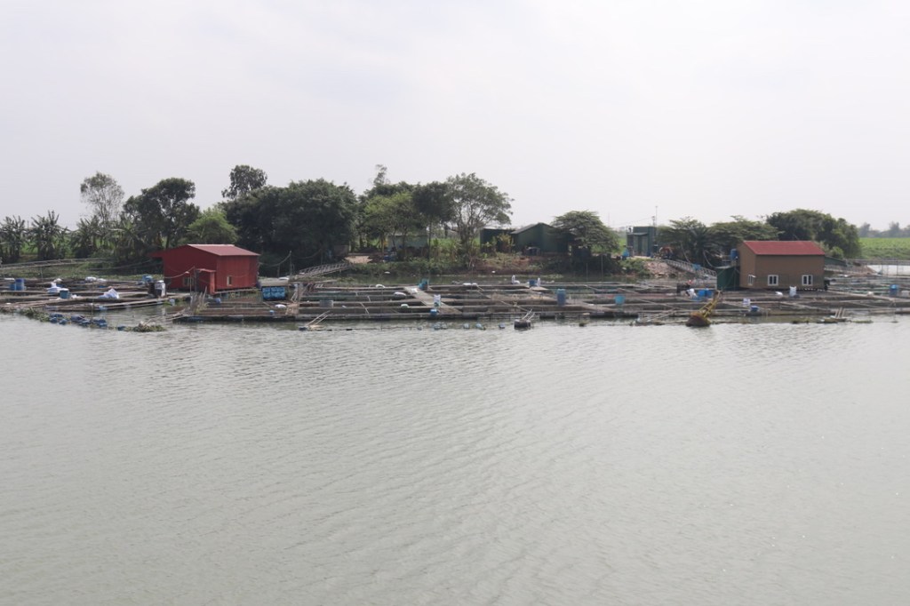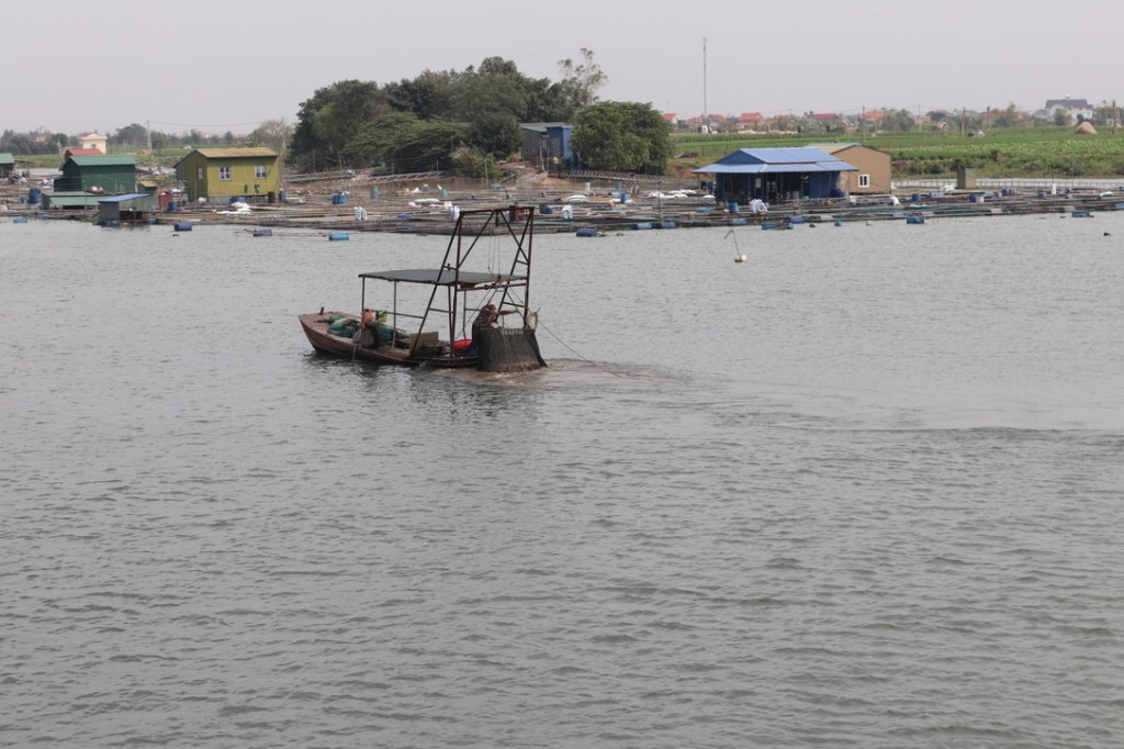 Along the river there was a large number of small trawling fishing boats – mostly single manned. In the background you can see one of the many fish farms that dotted both sides of the river.