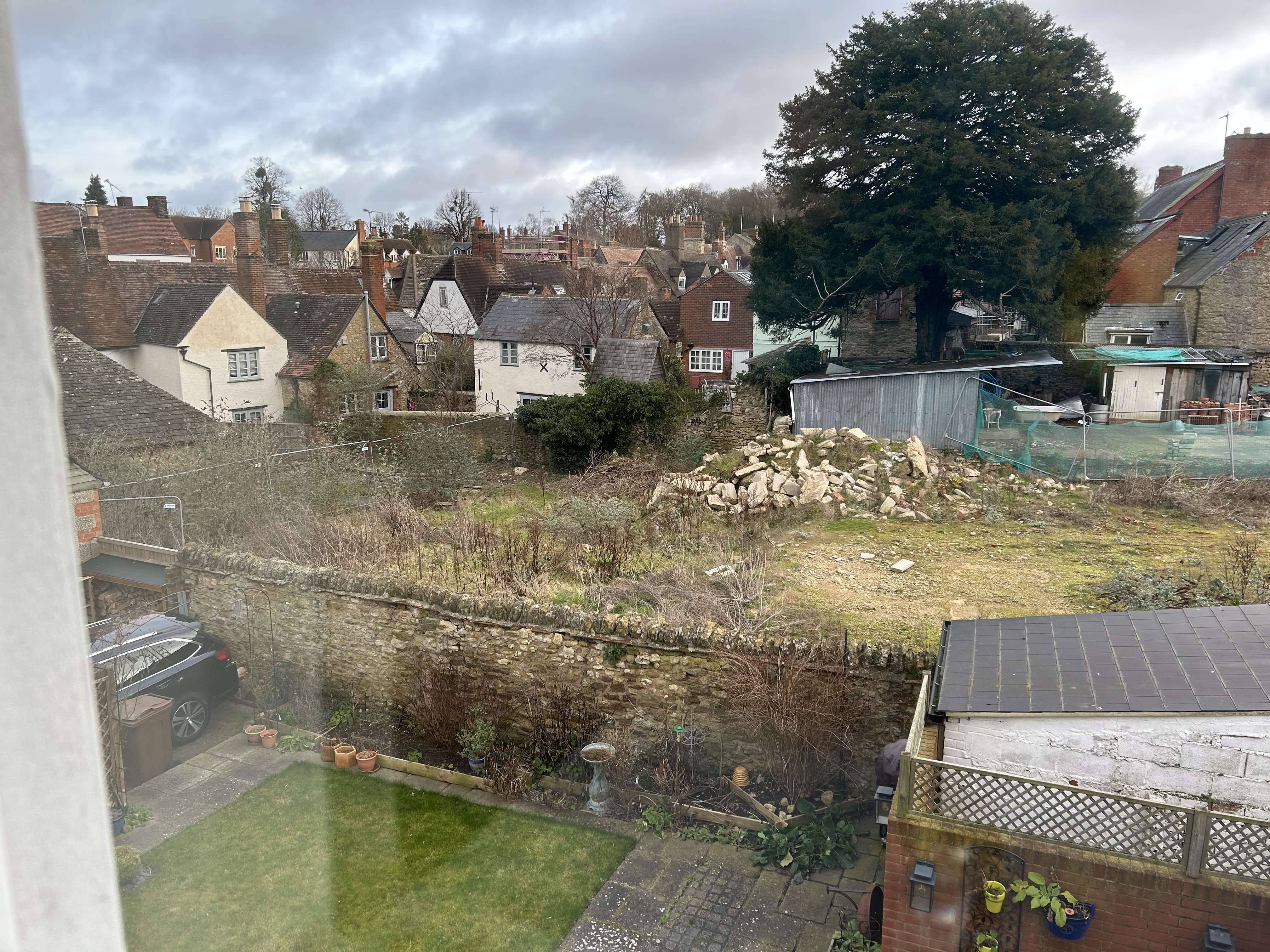 We left home with a derelict space behind us where the Antiques Shed was based. There was planning permission for 4 houses but the builder did not have enough money to finish what he had started. However we are expecting a new builder to start work before we return. So we may have a before and after photo! Will it be the same when