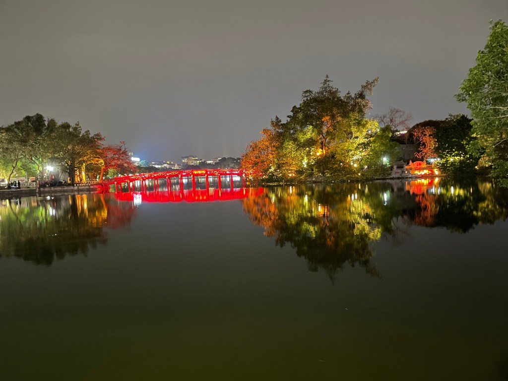 The lake area had been cordoned off and there was no traffic. After days of dodging motorbikes and listening to the constant whine and hum of the engines – it was blissfully calm. Everyone was out taking photos on New Years Eve. Lots of people in red.