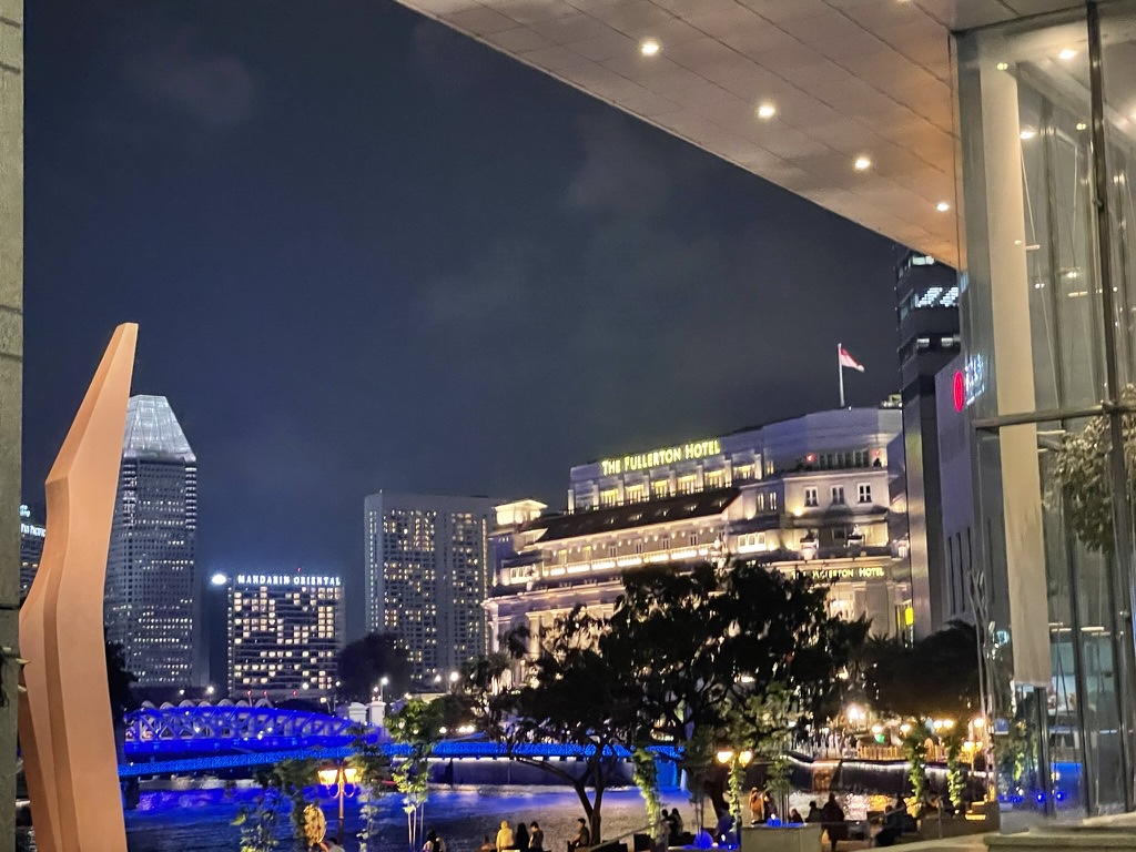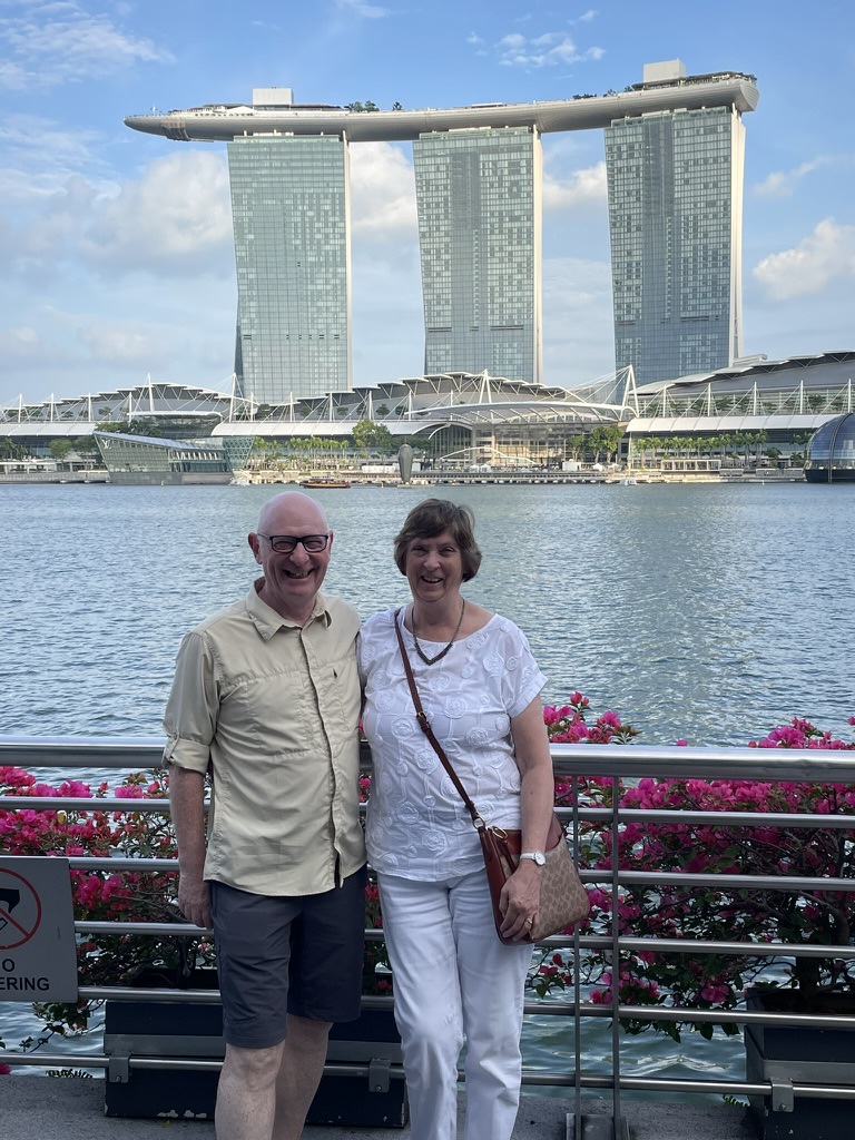 From the Gardens we went back to the area of Clarks Quay for supper and drinks at The Black Penny – an expats and English pub on the side of what is now a reservoir as a strategic source of water given the reliance on Malaya. (We discovered that Malaysia refers to Singapore and Malaya. At the point of independence both were a single country but Malaya effectively forced Singapore out after two years as they wanted a more Malay dominant country.) It was a great end to the day – relaxing in the warm weather with a lovely waitress who looked after us. We were very grateful to Neil and Carisa for looking after us so well in Singapore and making this a very memorable visit.