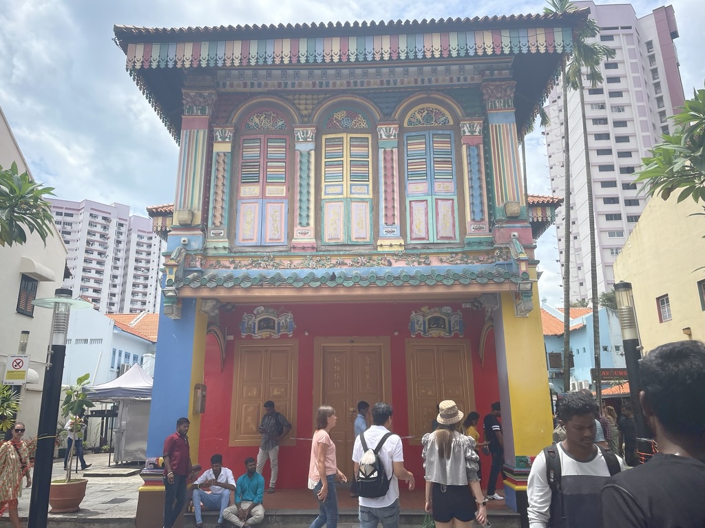 We had opted for a 1000hrs start for what was advertised ads a 5hr walk. We were not quite sure how we would cope with this in the heat and humidity. Michelle was our guide who met us at the hotel. She had been in the health sector but after Covid felt she needed a change. Her focus was on the cultural side of Singapore and its history. Opposite the hotel was the China Town – an area that had been given to the Chinese Clans when Singapore was being created as a major trading city. It was on the edge of the Central Business District – renovated houses towered over by the major banks. One of the main streets was Talok Ayer Street which would have originally been on the water front with new arrivals coming straight from the boat into lodgings and supply shops. Thian Hock Keng Temple has a prominent position on the street where arrivals gave thanks for safe passage as well as those about to leave on long journeys.
